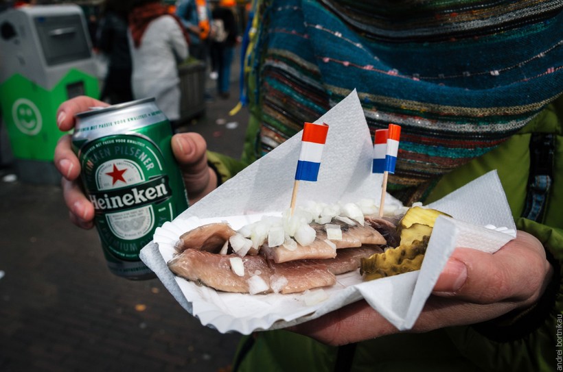 В Нидерландах не обедают. Чтобы заморить червячка, местным достаточно съесть пару сэндвичей или багелей (тот же сэндвич, только с бубликом). Ну и селедка. Ее едят все и в любое время. И, признаюсь, голландская селедка — это самая вкусная селедка, которую я ел. Еще стоит попробовать жареную треску. На ужин едят овощную пюреху, приготовленную с национальными особенностями, мясные шарики, стейки или рагу.