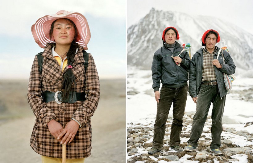 Слева: Долма, 18. Происхождение: Лхаса, Тибет. 1 обход. На фото справа: Лобсанг Еше, 27. Происхождение: Маркам, Тибет. 5 обходов. Крайний справа: Темпа Гьяцо, 28.