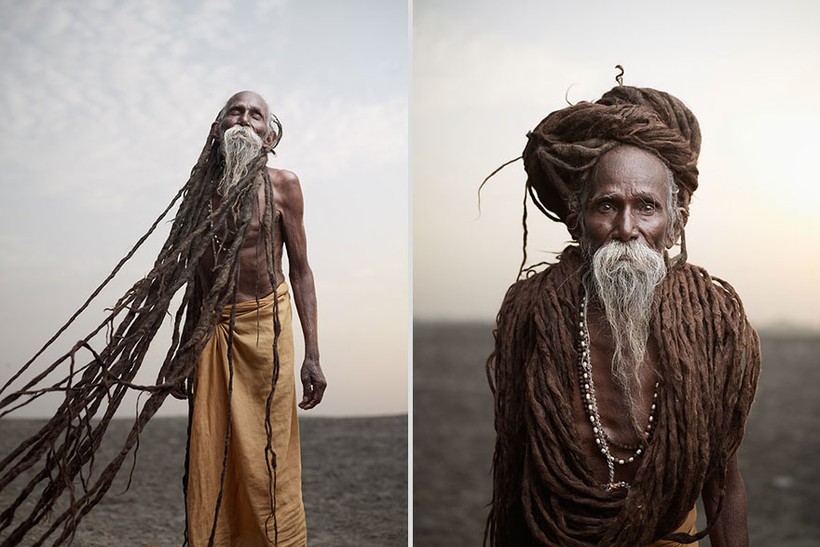 У Лал Баба есть дреды, которые достигают в длину нескольких метров. Он отпускает их более 40 лет. Садху дреды - признак отказа и жизни, посвященной духовности. Варанаси, Индия
