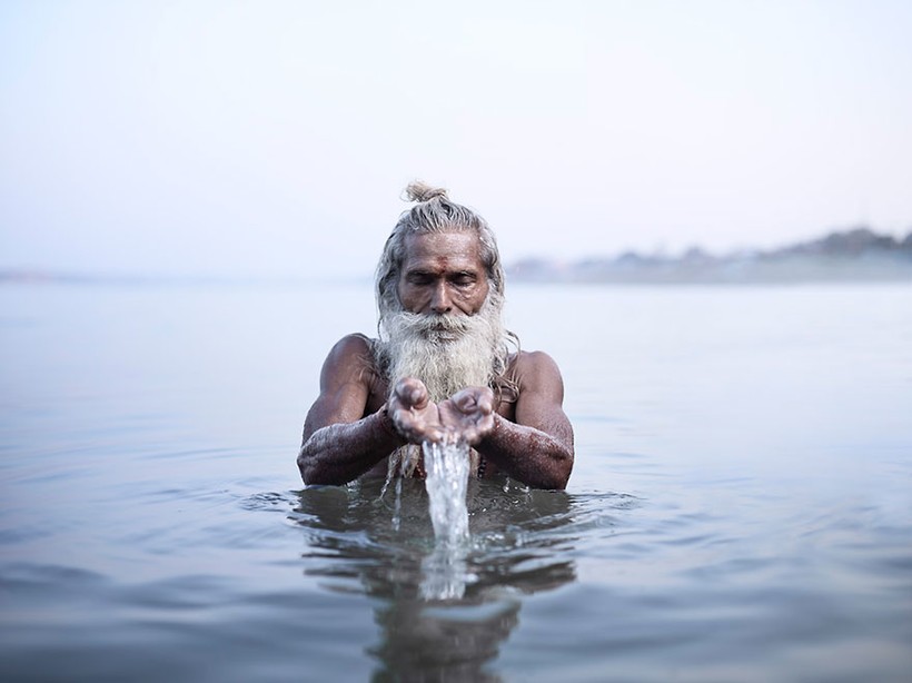 Вияу Нунд, выполняющий утренние ритуалы в реке Ганг, самом священном места в индуизме. Варанаси, Индия