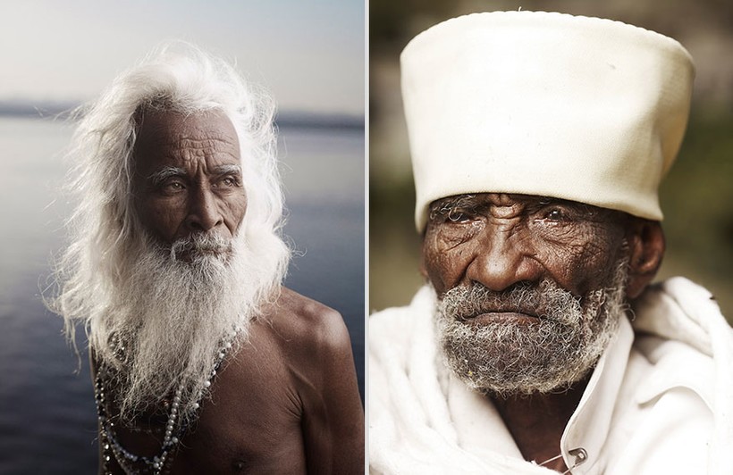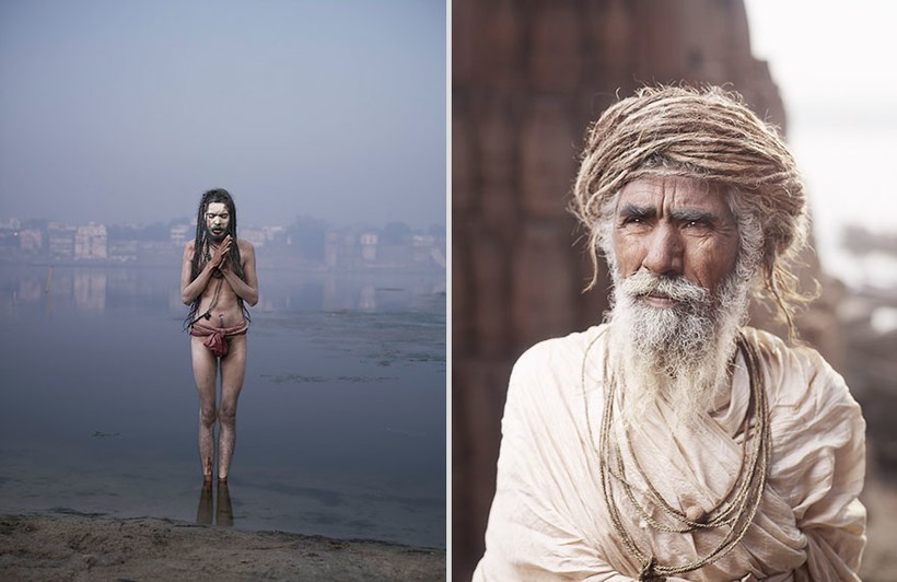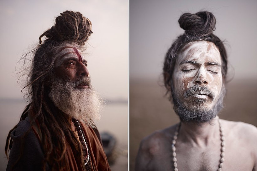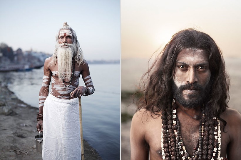 Справа: Лал Баба, 85 лет. Когда он был молод, родители Бабы хотели поженить парня. Однако, тот почувствовал свое сомнительное будущее и сбежал из дома в Бихаре (штат на востоке Индии), где поставил цель на всю жизнь – становление садху. Варанаси. Индия
