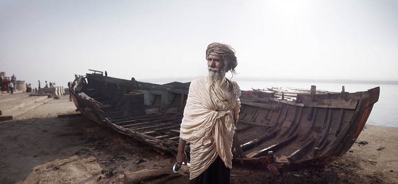 Рам Дас около обломков лодки. Варанаси, Индия.
