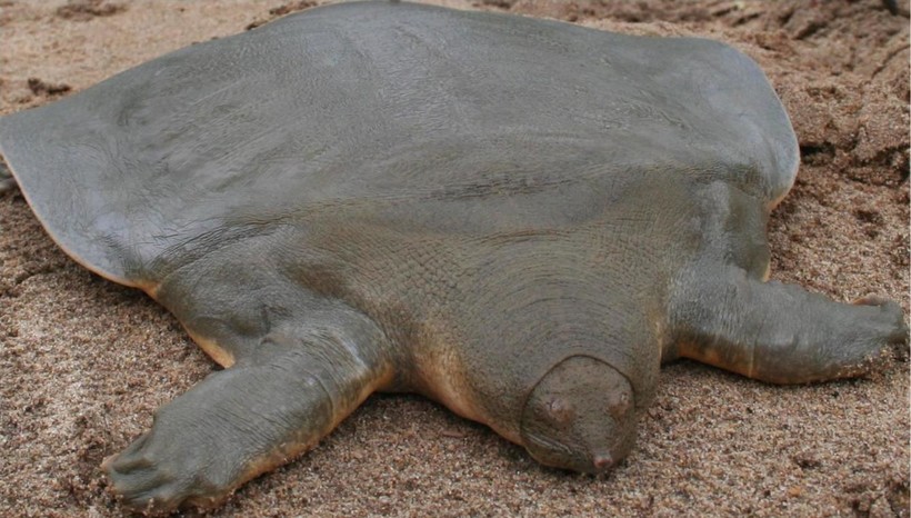 Это животное — крупнейшая сохранившаяся на Земле пресноводная черепаха. Pelochelys cantorii (латинское название черепахи) в длину достигает примерно одного метра, а весить может 100 килограммов. До 2007 года черепаху считали вымершей, однако потом вдоль одной из рек Камбоджи нашли самку и кладку яиц. Так что теперь этот вид находится под охраной, но сейчас его представителей можно увидеть в зоопарках: два самца живут во Вьетнаме и одна пара — в Китае.