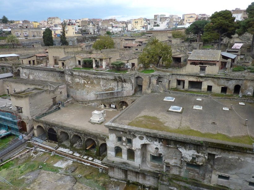 Город оставался покинутым довольно долго, но сейчас он частично перекрыт современным городом Эрколано.