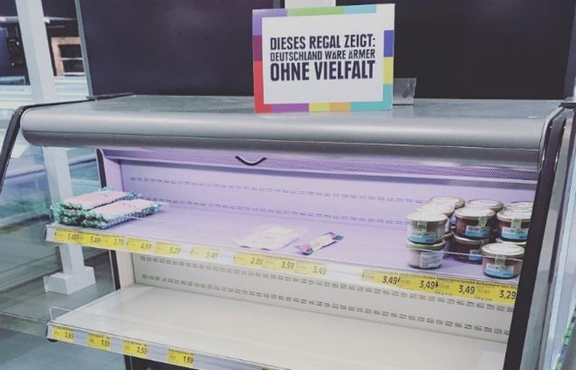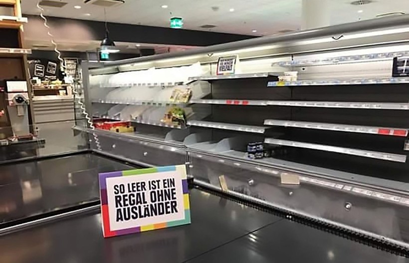 В прошлом году, в конце лета, когда покупатели зашли в супермаркет Edeka в Гамбурге, то с удивлением обнаружили, что полки были почти пусты, а небольшая часть оставшихся продуктов произведена в Германии. Казалось, что персонал супермаркета просто забыл пополнить ассортимент. Но затем покупатели обратили внимание на таинственные знаки, расставленные по всему магазину. «Эта полка такая пустая, потому что на ней нет иностранцев» и «Эта полка очень скучна без разнообразия», — гласили таблички.
