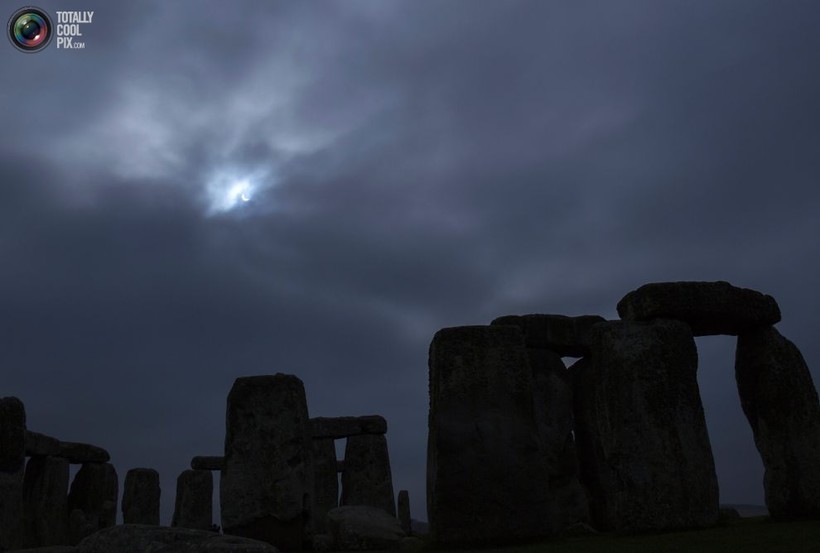 Частичное солнечное затмение над Стоунхенджем, Англия.