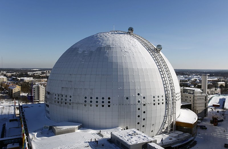 Огромный шар стокгольмской Глобен-Арены достигает 110 метров в диаметре и имеет высоту 85 метров. Длина расположенного на нем лифта составляет 100 метров. Подъемник оборудован двумя сферическими кабинами, доставляющими туристов наверх, откуда открывается великолепный вид на окрестности.