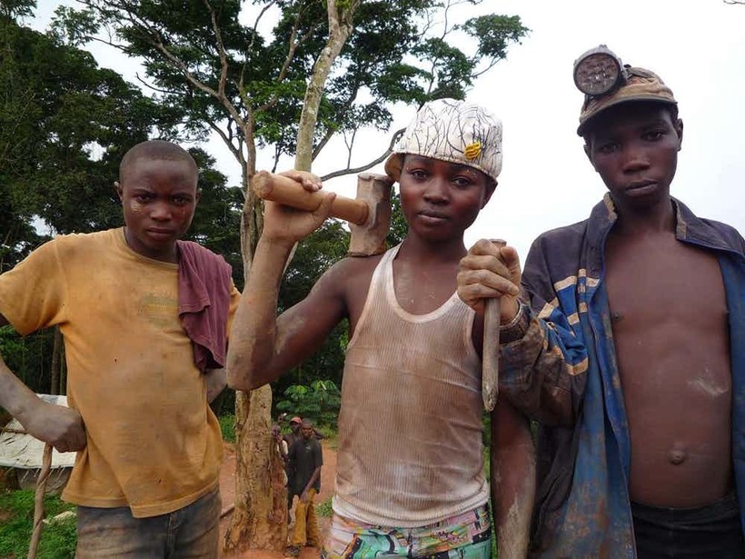 Эти мальчики работают на шахтах по добыче кобальта. Этот ценный металл используют в производстве мобильных устройств, а месторождений его не так уж и много. Так, например, несколько есть на территории Африки. И тут трудятся дети. Для них это норма — работать на шахте. За свой труд они практически ничего не получают, другой жизни они не знают. Многие шахты контролируются криминальными авторитетами, так что этот труд легко приравнять к рабству.