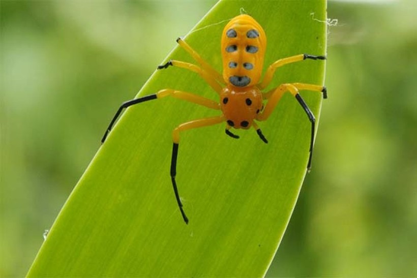 Platythomisus octomaculatus — один из самых ярких пауков. С ярко-желтым телом и черными пятнами он выглядит так, будто нарядился в костюм божьей коровки для Хэллоуина.