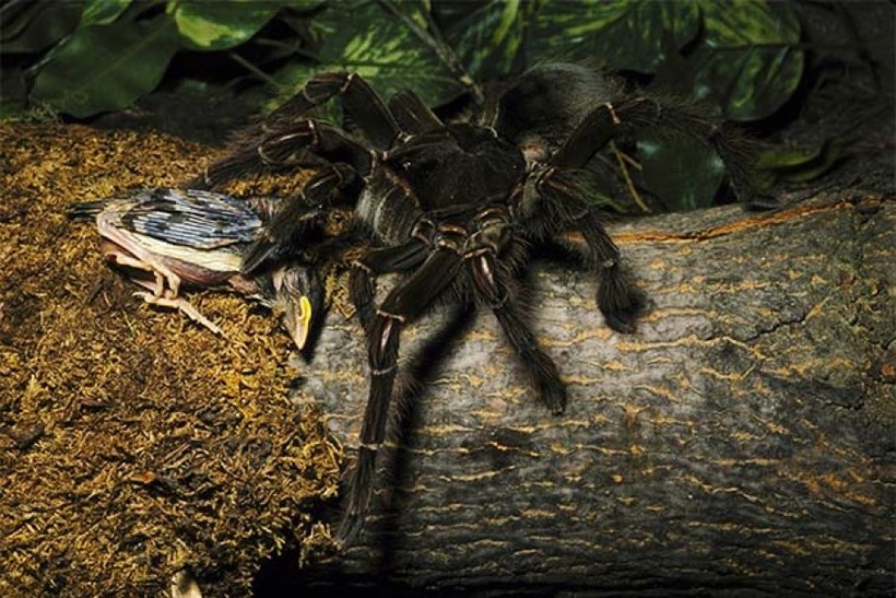 Голиаф обладает бархатистым черным телом и клыками, которые составляют около 2 сантиметров в длину. Обычный рацион птицееда-голиафа составляют сверчки и жуки. Несмотря на свое название, он редко питается птицами, но способен убивать и довольно большую добычу вроде мелких млекопитающих и лягушек. Но если птицеед укусит вас, эффект, вероятно, будет не слабее, чем от укуса осы.