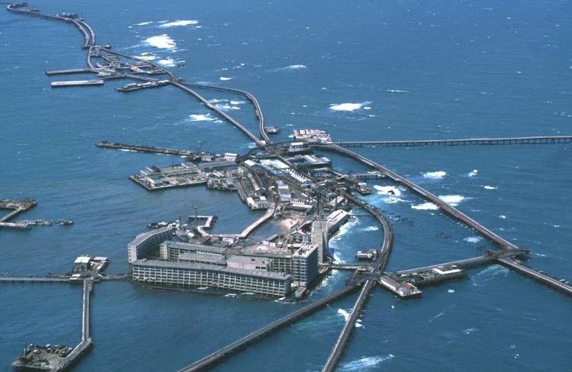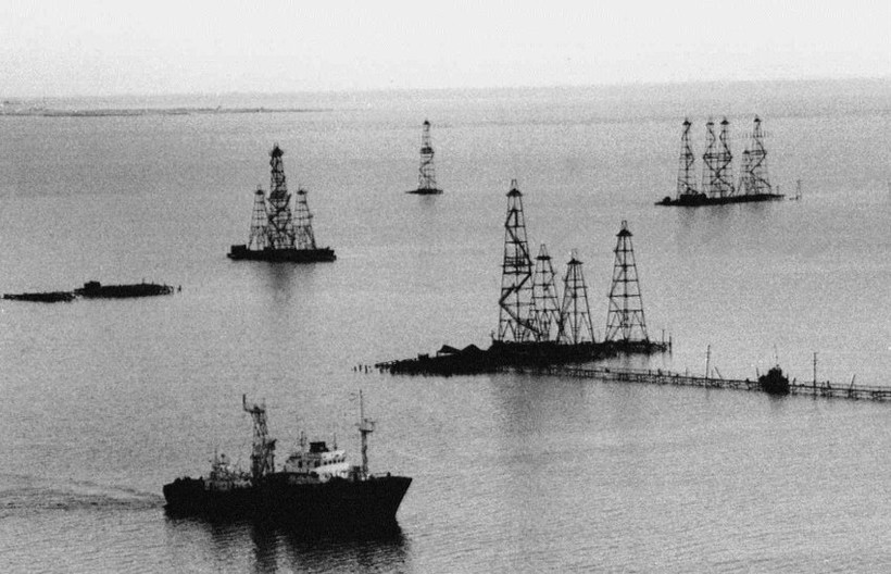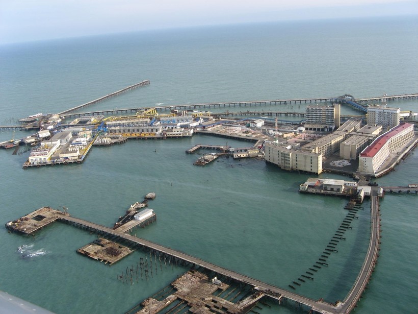 Когда война закончилась, советские инженеры прибыли на прибрежный островок и провели бурение на пробу. В 1949 году выяснилось, что на глубине тысячи метров под морским дном находятся нефтяные залежи высокого качества. Поэтому рабочие принялись создавать нефтедобывающую платформу. Конечно, она была весьма примитивной, сделанной из дерева, но зато являлась первой в мире.