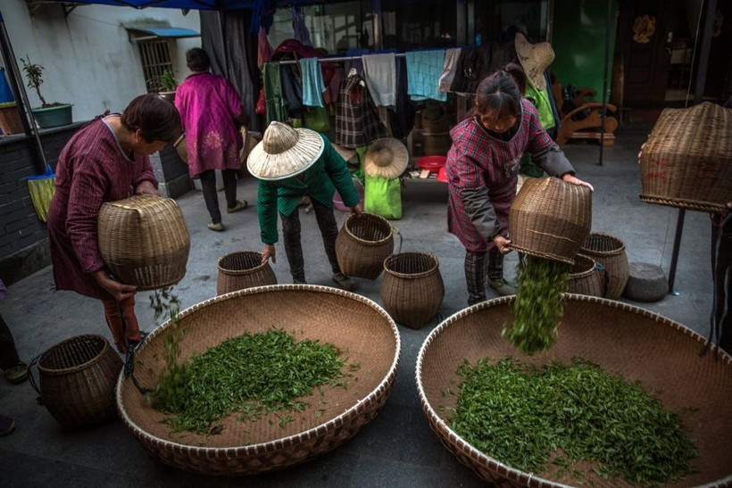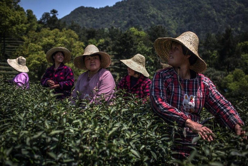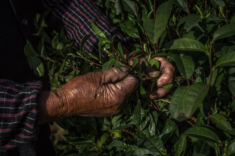 В сезон сбора чайных листьев на плантации приходят временные рабочие.