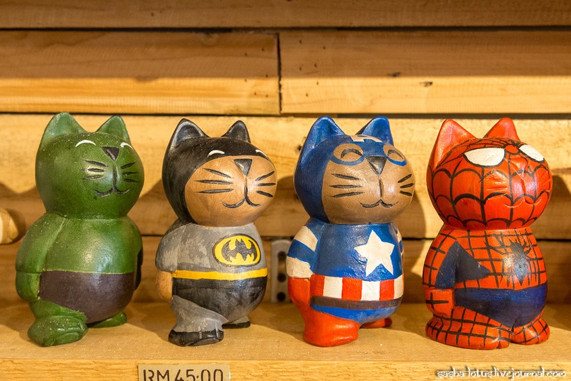В каких только образах их здесь не изображают. Цена от 45 ринггитов (~620 рублей) за такого котофея, симпатичный пылесборник.