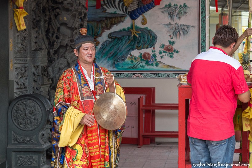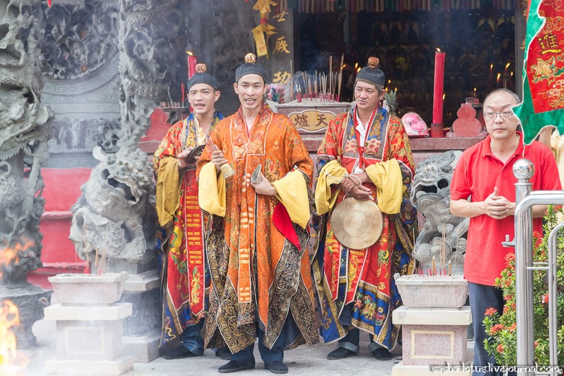 Если еще говорить о храмах Джорджтауна, мы не успели доехать до бирманского и сиамского буддистских храмов. Так что увиденная церемония в клановом китайском храме со служителями в традиционных нарядах, пением и ритуальным костром посреди улицы стала настоящим подарком.