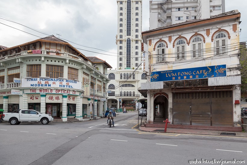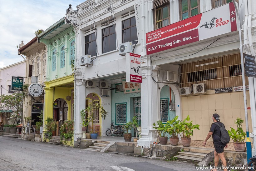 Архитектура исторического центра Пенанга представляет собой смешение колониального британского и китайского стилей. Дома ветшают, покрываются плесенью, медленно и редко реставрируются, вокруг них вырастают современные многоэтажки. ЮНЕСКО не смогло пройти мимо уникального культурного наследия, сохранившегося с XVIII-XIX веков и внесло район в список объектов Всемирного наследия, что для региона Юго-Восточной Азии, в принципе, не рядовое событие.