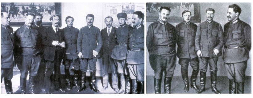 Из 20 делегатов 8-го съезда РКП(б), состоявшегося в марте 1919 года, около половины были убиты, трое покончили с собой, протестуя против сталинской политики. На самой известной версии этого снимка под ретушь попали все, кроме Ленина, Сталина и Калинина. Впрочем, последнего тоже то и дело удаляли и возвращали в кадр.