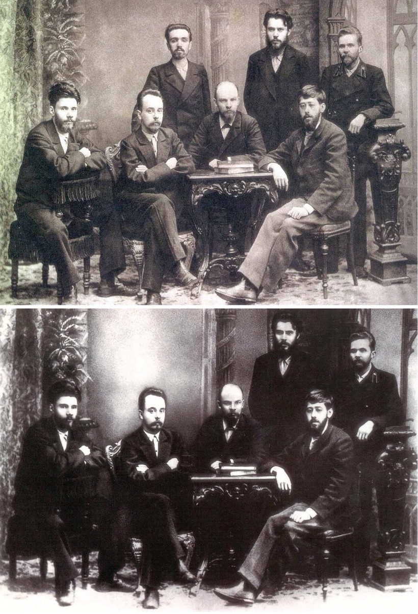 На второй версии снимка один из членов петербургского «Союза борьбы за освобождение рабочего класса» Малченко А.Л. уже отсутствует. После того, как его обвинили в контрреволюционной деятельности и расстреляли, его фигура была стерта с исторического снимка.