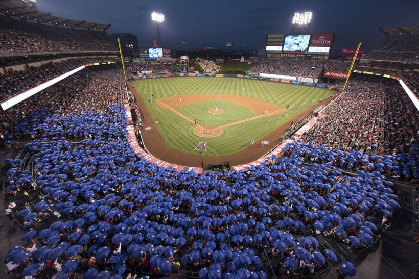 Рекорд поставили в Анахайме (Калифорния) 14 июня 2016 года во время игры по бейсболу между Minnesota Twins и Los Angeles Angels. Фанаты на стадионе одновременно открыли свои зонты.
