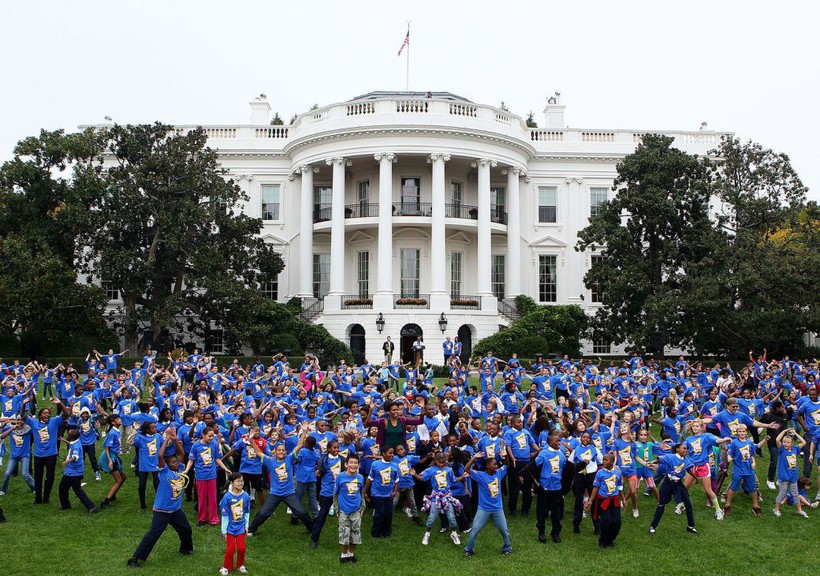 А этот рекорд возглавила бывшая первая леди Мишель Обама. 11 октября 2011 года 400 школьников и миссис Обама прыгали в Розовом саду Белого дома в течение одной минуты. Всего же в акции «Давайте прыгать!» участвовали 300 265 человек, в течение 24 часов они должны были прыгать и хлопать в ладоши над головой в присутствии представителей Книги рекордов Гиннесса. Рекорд был зарегистрирован в 1050 разных местах.