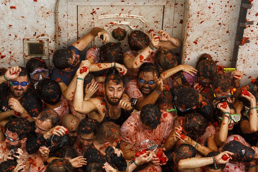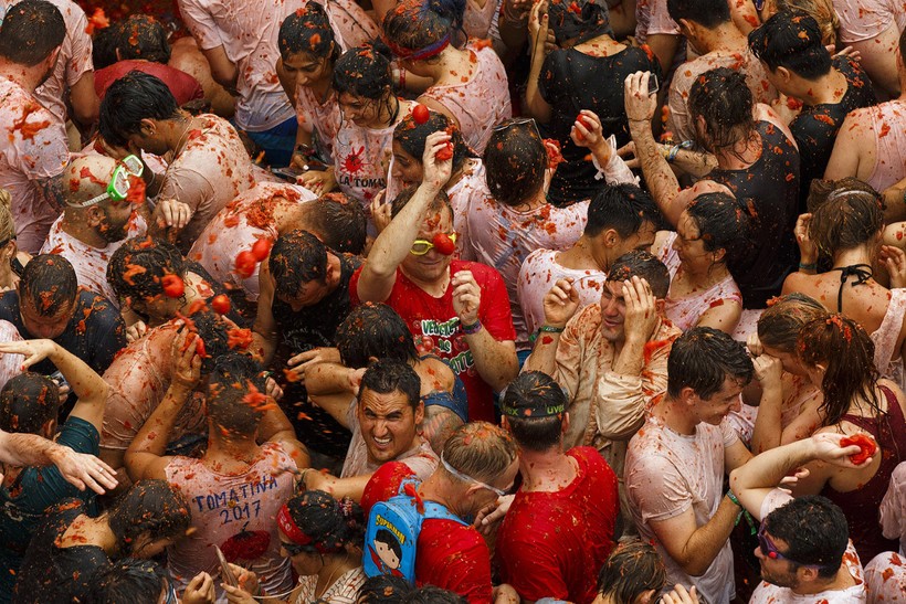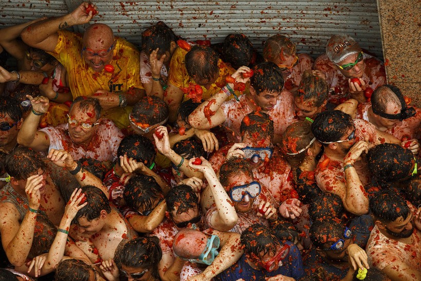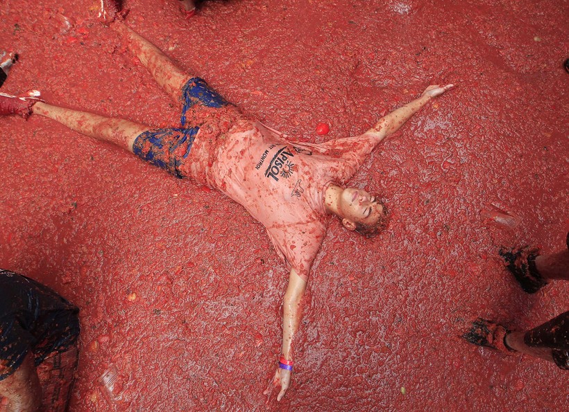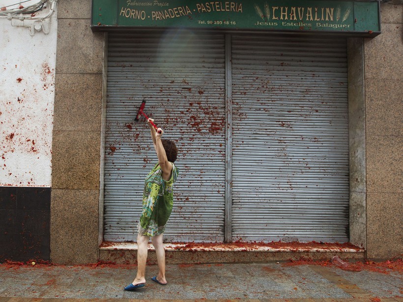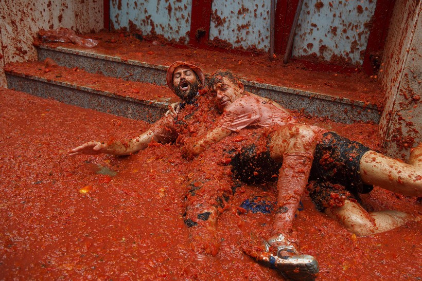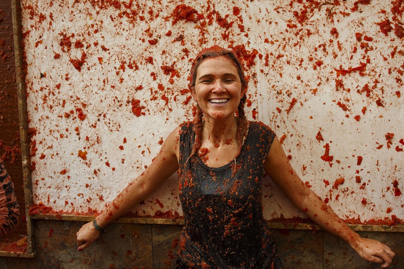 Так что после этих помидорных боев стены домов абсолютно красные, лица людей абсолютно счастливые, а помидорная жижа доходит иногда до щиколоток.