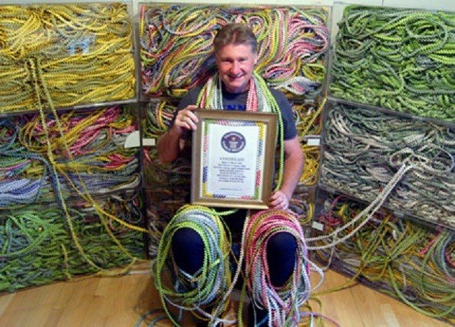 Американец Гэри Душль из города Вирджиния-Бич (штат Вирджиния) собирает фантики от жвачки и делает из них цепочку. И это самая длинная цепочка в мире (27 250 метров), в ней 2 142 857 фантиков. И да, Гэри не остановился на достигнутом, он все еще удлиняет свою цепочку.