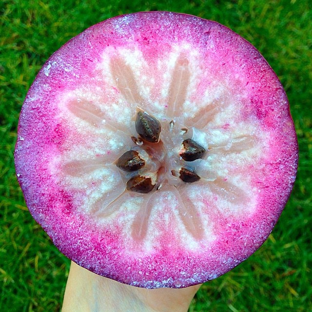 Фрукт, распространенный в Южной Америке, кажется слишком красивым, чтобы его съесть. Имеет сладкую, молочно-белую мякоть, а в разрезе плод напоминает по форме звезду.