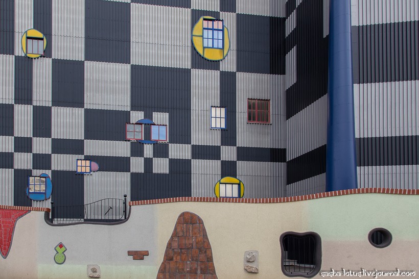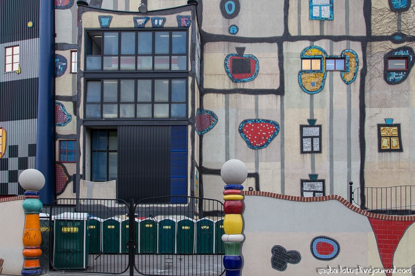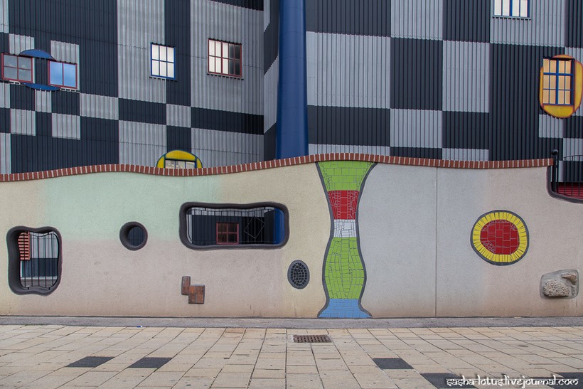 К аляповатому зданию мусоросжигательного завода Шпиттелау, обеспечивающему теплом десятки тысяч домов Вены, жители австрийской столицы относятся более снисходительно, чем к другому проекту Хундертвассера, биоморфному жилому экодому. Сказочного замка с башней могло и не быть — архитектор не сразу дал согласие на дизайн важного сооружения.