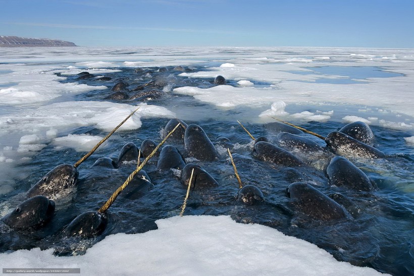 Нарвалы — одни из самых загадочных морских млекопитающих на планете. Они обитают в Северном Ледовитом океане, в районе плавучих льдов. Основная часть их популяции сосредоточена у берегов Канады, но встречаются группы нарвалов в районе Шпицбергена и Земли Франца-Иосифа. Интересной чертой этих животных является наличие необычного бивня на голове у самцов. Иногда встречаются животные с двумя бивнями, а изредка этот своеобразный рог встречается даже у самок. Бивень нарвала — это один из двух его зубов, который вырастает в длину до 2-3 метров, при том что длина тела самцов составляет около 5 метров. Размеры самок скромнее, около 3-4 метров. Рог полый внутри и довольно легкий: при своих внушительных размерах весит всего 10 кг. Эти бивни очень прочные, но вместе с тем обладают некоторой гибкостью и могут отклоняться до 30 см в обе стороны. Кажется, что такой рог делает животных неуклюжими и даже затрудняет движение. Ученые долго спорят о предназначении этой необычной части тела. Предполагалось, что он служит самцам для выяснения отношений со своими сородичами в борьбе за самок или для защиты от морских хищников. Также рассматривалась версия, что при помощи бивня животные могут ориентироваться в пространстве, так как он пронизан нервными окончаниями и может выполнять функции эхолокатора. Но, как удалось выяснить недавно биологам из Всемирного фонда дикой природы, нарвалы используют бивень для иных целей.