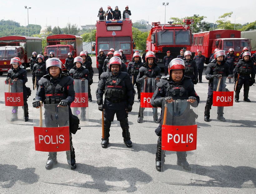 У полиции в Малайзии есть оборудование для борьбы с беспорядками. Куала-Лумпур.