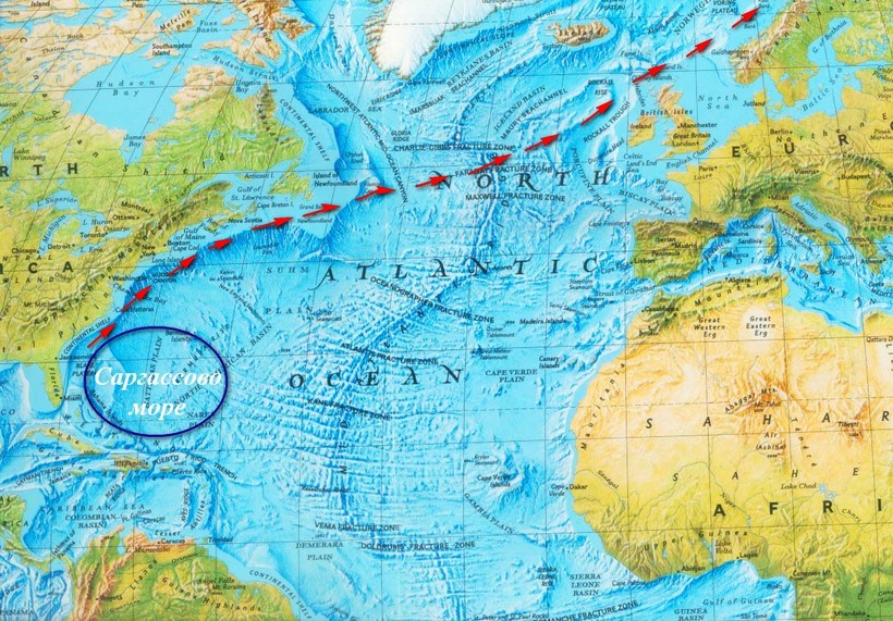 Но почему угри преодолевают такие большие расстояния, неужели нет подходящих мест поближе? Ихтиологи предлагают две версии такого необычного жизненного цикла, и обе они уходят корнями в глубь тысячелетий. По одной из них, угрям приходится преодолевать такое большое расстояние из-за дрейфа материков. Согласно теории движения литосферных плит, Атлантический океан расширяется, а Европа и Северная Америка отдаляются друг от друга примерно на 2 см в год. Получается, что с начала третичного периода привычные места нереста угря отдалились от Европы на тысячи километров, вынуждая этих рыб преодолевать такие внушительные расстояния. По другой версии, все дело в смещении Гольфстрима. В последний ледниковый период это теплое течение протекало гораздо южнее, в широтном направлении от Карибского моря до берегов Испании. С потеплением климата Гольфстрим значительно сместился на север, увеличив тем самым путь, который личинки угря преодолевают до севера Европы.