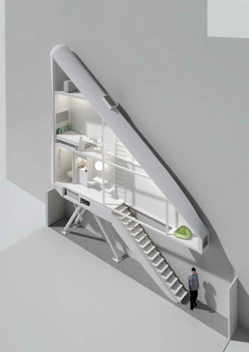 Почти таких же размеров и маленький двухэтажный дом в Великобритании. Нижний этаж вмещает спальню и душевую, на верхнем находится кухня и гостиная. Этот дом рассчитан только на одного жильца.