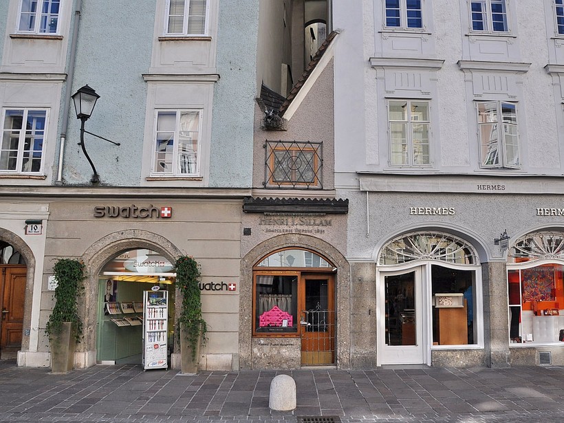 Хоть большинство местных жителей и считает этот дом самым маленьким в городе, здесь есть свои нюансы. В то время, когда появилось это здание, сумма налога зависела от того, какой ширины фасад у дома. Так что один предприимчивый гражданин решил возвести необычный жилой дом, фасад которого не превышал бы одного метра. Но на самом же деле он является только входом.