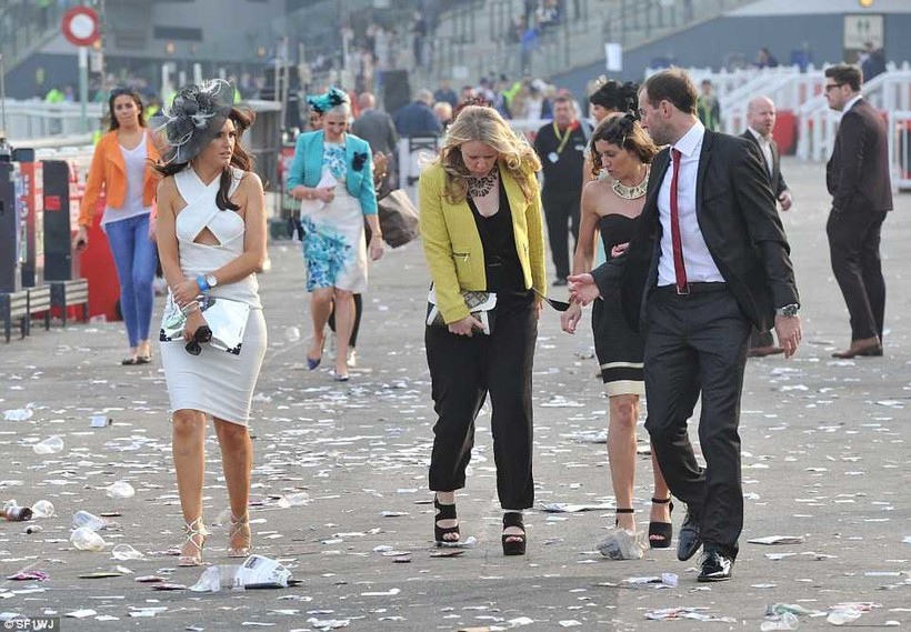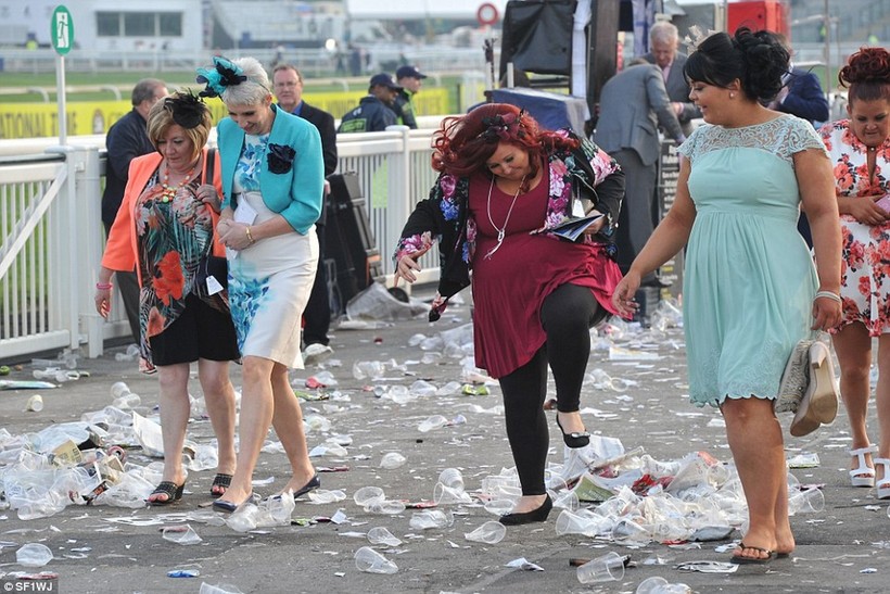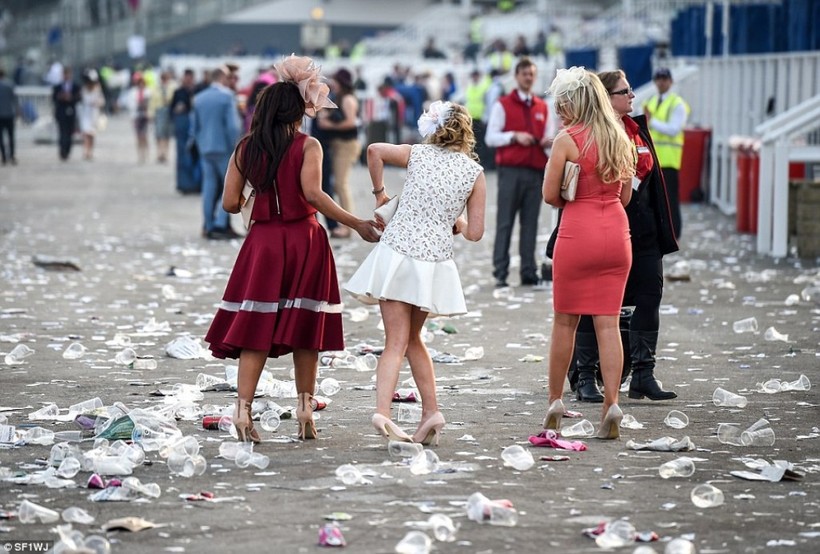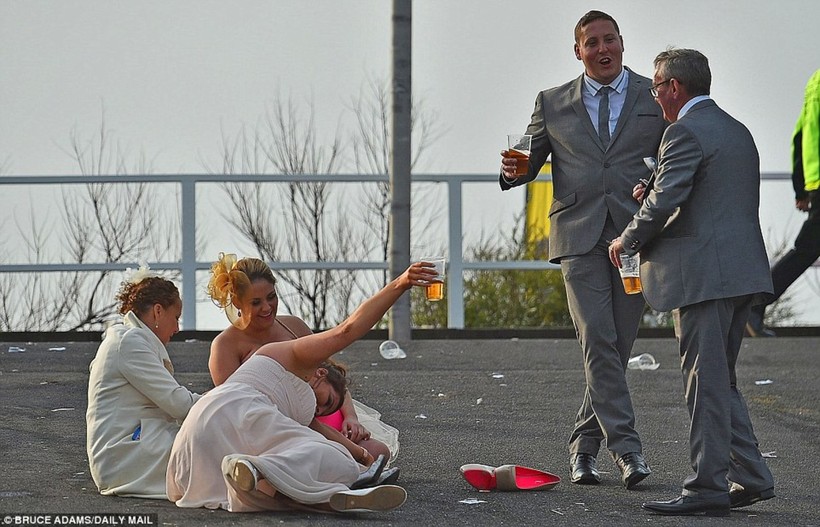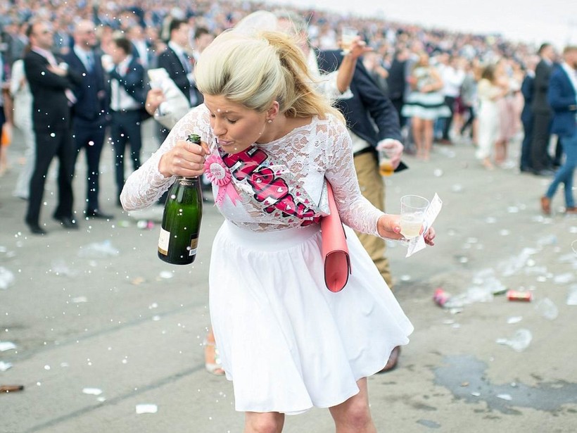 Так, раз в год прекрасные английские леди съезжаются на скачки Grand National в британский город Эйнтри. Они надевают свои шикарные костюмы и туфли на каблуках, украшают прическу бесподобными шляпками, берут бокал шампанского, потом еще один, еще... и еще. И вот тут начинается самое интересное. Смотрите сами, как леди уходят в отрыв!