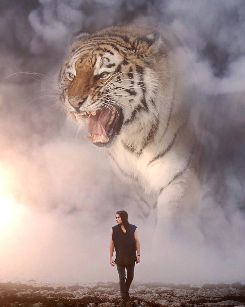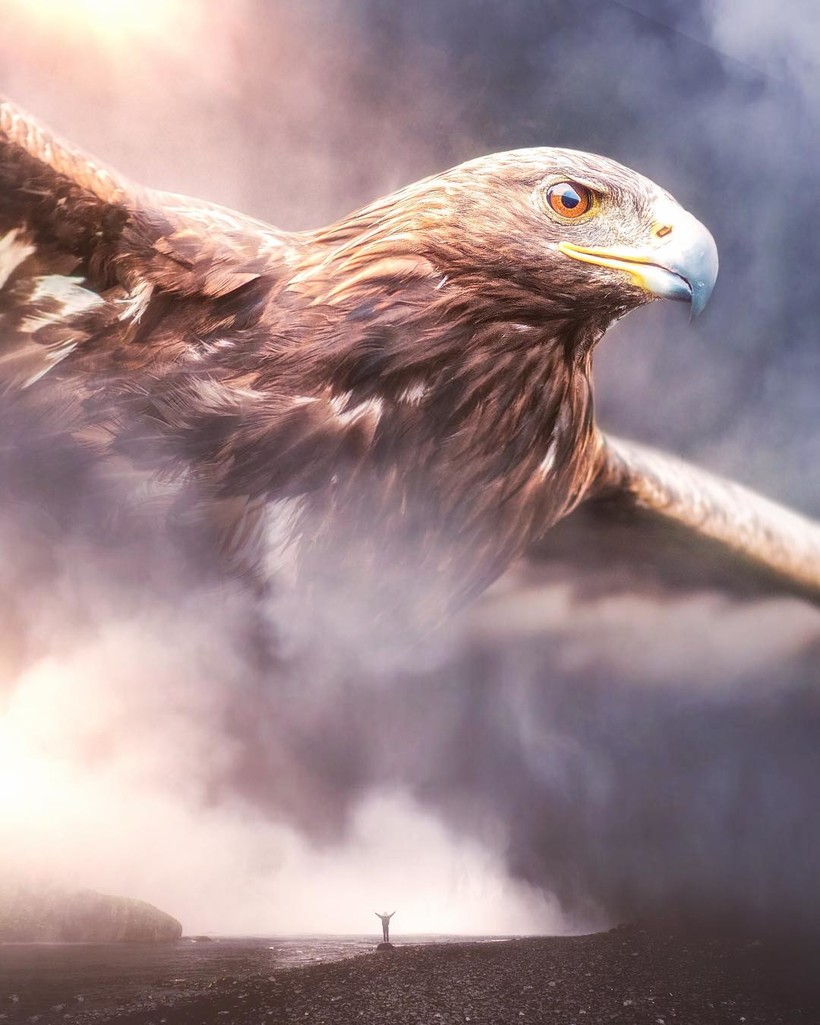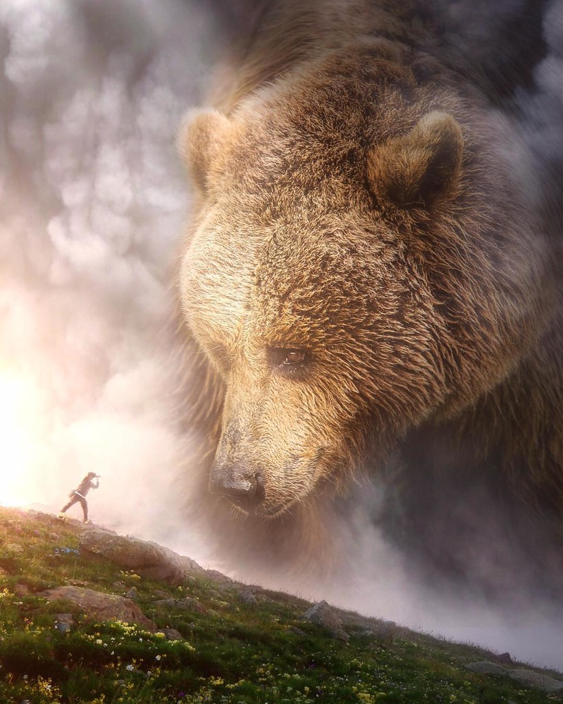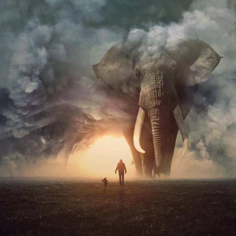 Австралийский digital-художник под ником Eben обладает богатой фантазией и незаурядными навыками в деле преображения фотографий. Как признается парень, его всегда вдохновляло могущество царства животных и трепет, который испытывает перед ним человек. К тому же художник верит, что у каждого из нас есть духовные животные, которые ведут и защищают нас в этом мире. Именно эта страсть и мировоззрение побудили мужчину сделать прекрасную серию изображений о гигантских животных и крошечных людях.