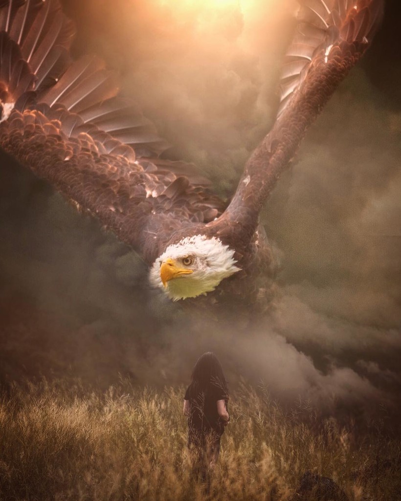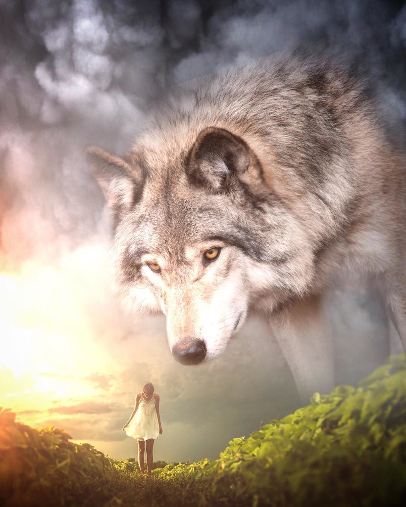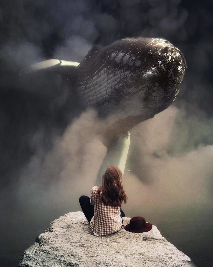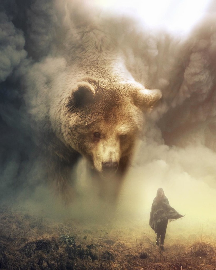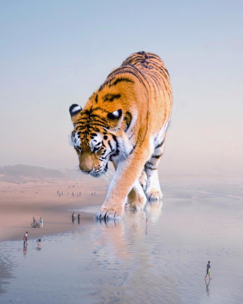 Австралийский digital-художник под ником Eben обладает богатой фантазией и незаурядными навыками в деле преображения фотографий. Как признается парень, его всегда вдохновляло могущество царства животных и трепет, который испытывает перед ним человек. К тому же художник верит, что у каждого из нас есть духовные животные, которые ведут и защищают нас в этом мире. Именно эта страсть и мировоззрение побудили мужчину сделать прекрасную серию изображений о гигантских животных и крошечных людях.
