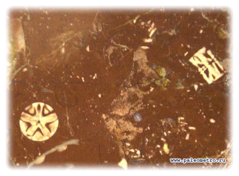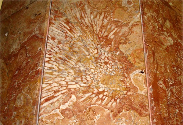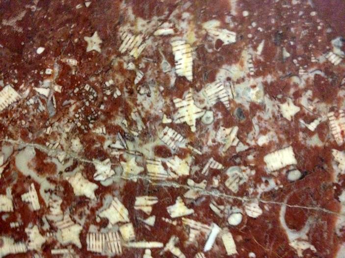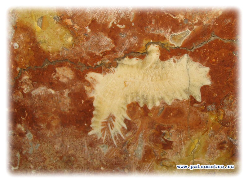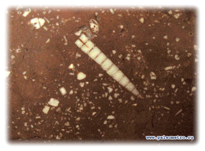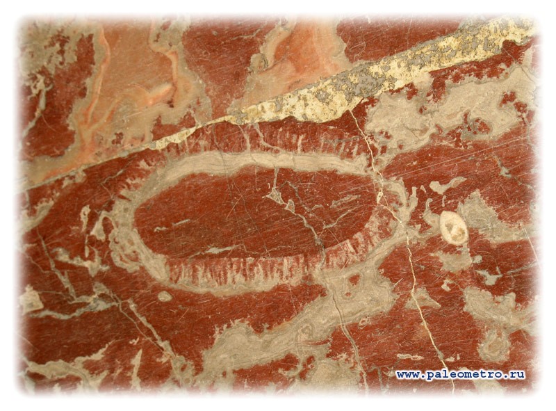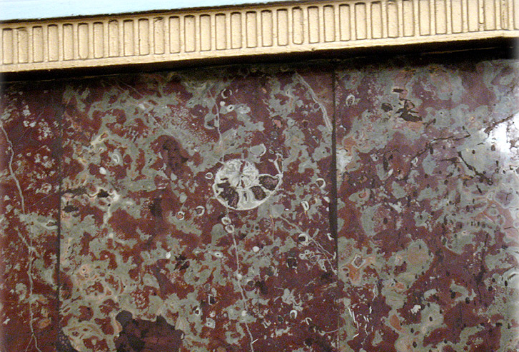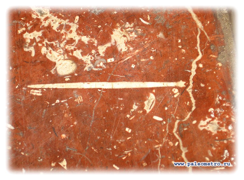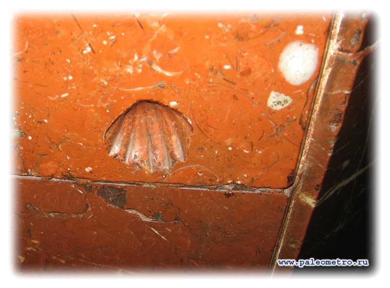 Брахиоподы живут и сейчас, это беспозвоночные морские животные, их можно встретить как на мелководье, так и на морском дне. Они часто зарываются в грунт, либо прирастают к камням. И вот такие окаменелости можно разглядеть в облицовке колонн на станциях из красного мрамора: «Каховской», «Арбатской», «Краснопресненской», «Выставочной».