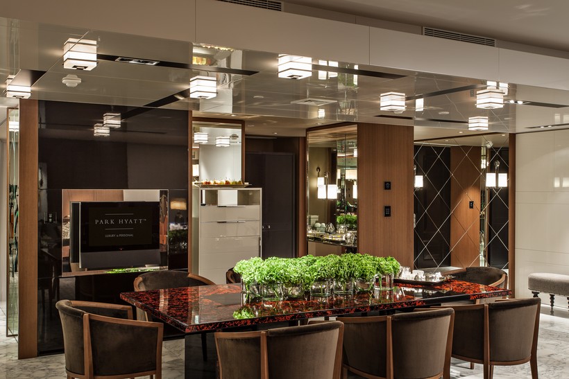 Отель Ararat Park Hyatt Moscow открыл уникальный двухэтажный люкс «Пентхаус», созданный по проекту знаменитого архитектора Тони Чи. Современный дизайн, чистота линий и внимание к деталям создают в нем ощущение дома. При этом люкс идеально подходит для проведения элегантного вечернего коктейля. Попадая в «Пентхаус», гости оказываются словно в искристой «шкатулке». Это ощущение достигается за счет большого количества зеркал, глянцевых поверхностей, игры света и многослойности текстур. В самом центре Москвы, в просторной гостиной люкса гости могут устроить высокий прием для деловых партнеров или ужин для близких людей, приготовленный личным шеф-поваром здесь же на кухне с отдельным входом.