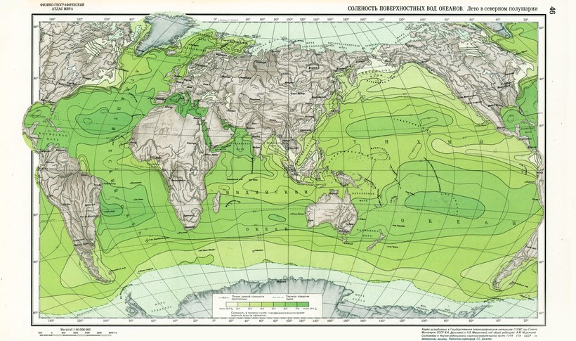 Сегодня соленость Мирового океана все же несколько отличается в разных точках планеты. В более холодных приполярных морях (море Росса или Баренцево море) она равна 34–35,0‰, в то время как ближе к экватору этот показатель несколько выше — до 36–37 ‰ в Саргассовом море и даже до 41‰ в Красном море. Это объясняется тем, что в жарком климате идет большее испарение с поверхности океана и незначителен приток пресных вод с реками. В то время как в холодные северные моря регулярно поступает пресная вода от сезонного таяния льда, ну и конечно, от впадения крупных рек северного полушария.