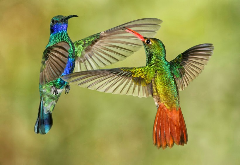 А вот об удивительных особенностях полета этих пташек ученые узнали совсем недавно, благодаря замедленным съемкам. Оказывается, это единственная птица в мире, которая умеет летать назад, боком и даже вниз головой! Колибри также способна зависать на одном месте перед цветком в течение длительного времени, как это делают поглощающие нектар насекомые.