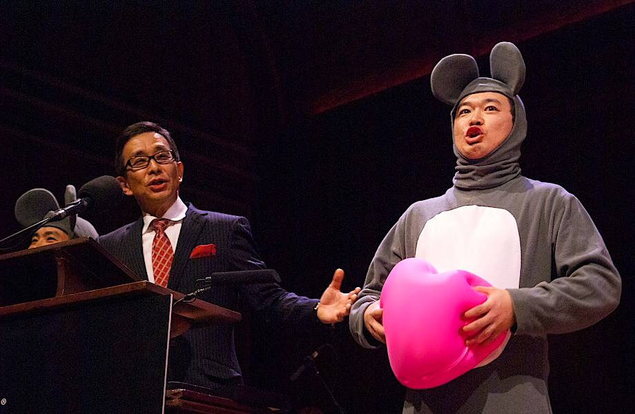 Есть в США забавная пародия на известную ежегодную премию Нобеля, и вот в этом году в Гарвардском университете состоялась 27-ая по счету церемония вручения «Шнобелевской премии» (Ig Nobel Prize 2017) за самые спорные и необычные исследования. Само присуждение премий выстроено довольно комично — претендент должен высказаться за одну минуту, после чего его беспардонно прерывают. Девочка останавливает рассказчика словами «Пожалуйста, прекратите. Это скучно».