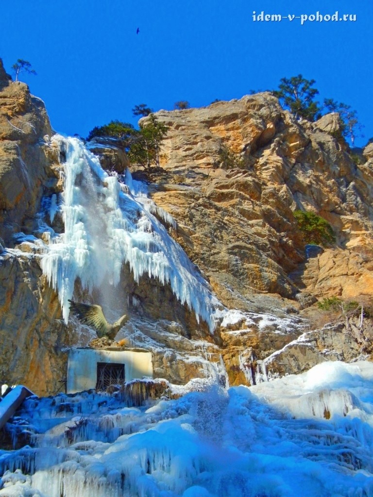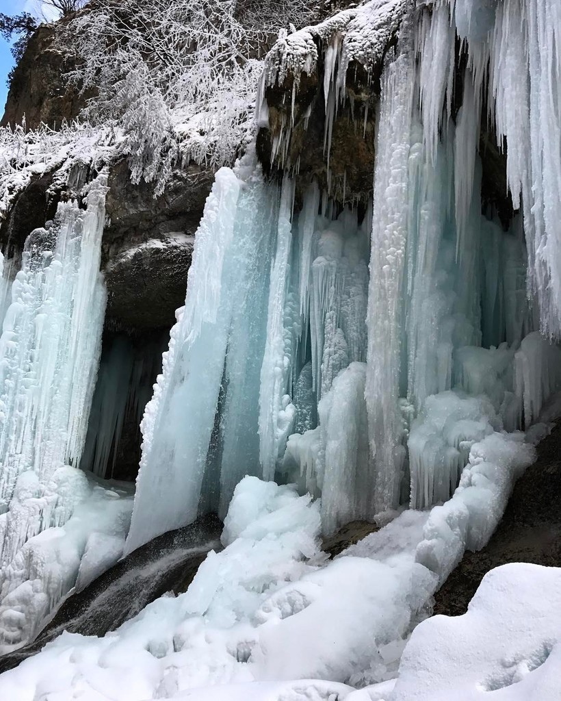 Но что же становится с водопадами зимой? Они замерзают. Конечно, не везде, все зависит от температуры воздуха, но в России суровые зимы, поэтому увидеть такое чудо можно во многих регионах нашей страны. Осталось выбрать только, куда отправиться) Сильные морозы превращают воду в настоящие скульптуры, которые можно разглядывать бесконечно.