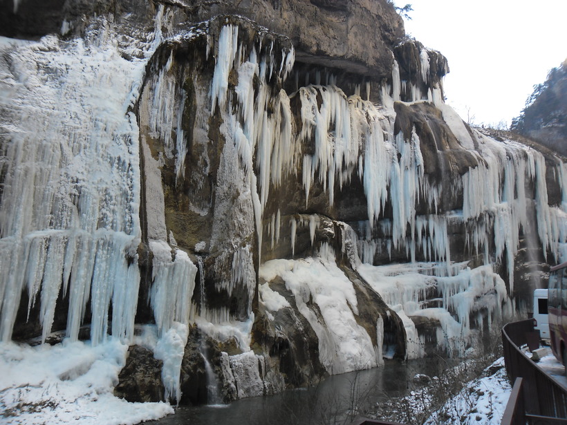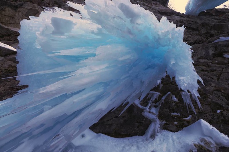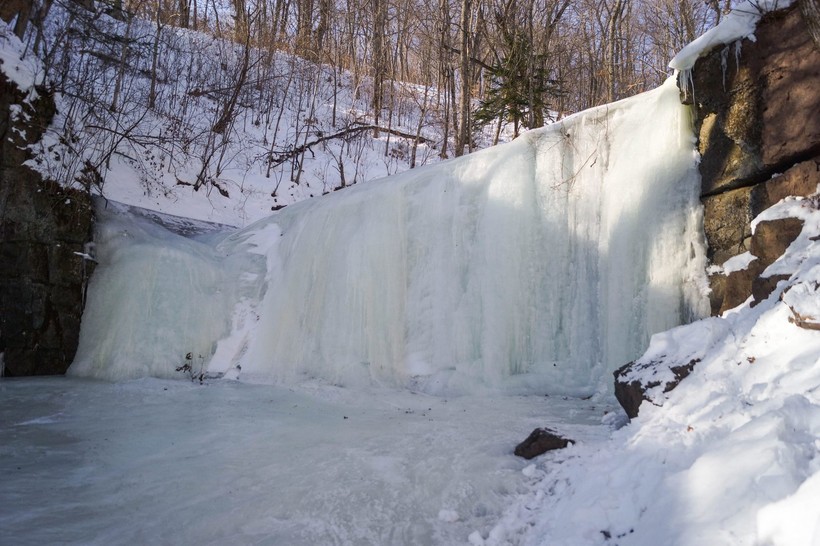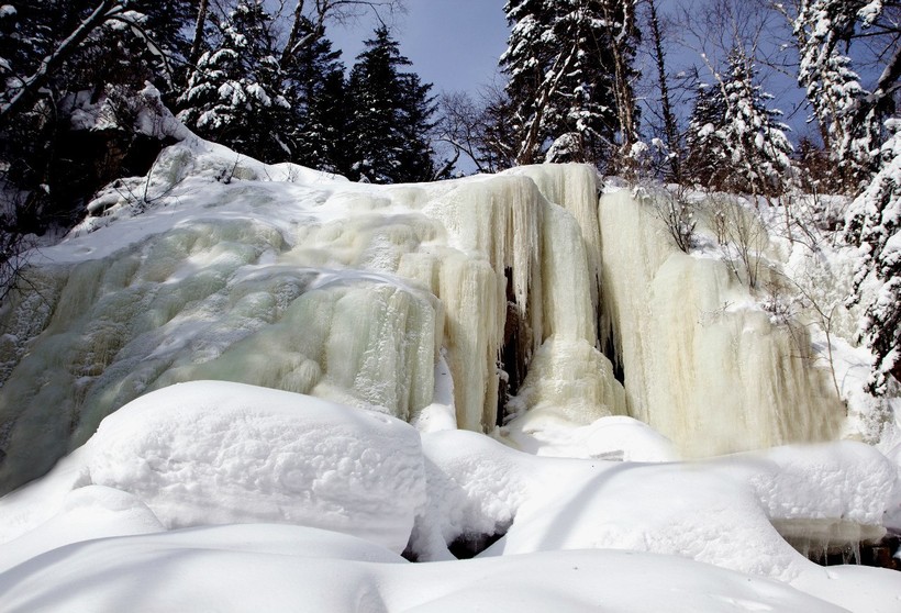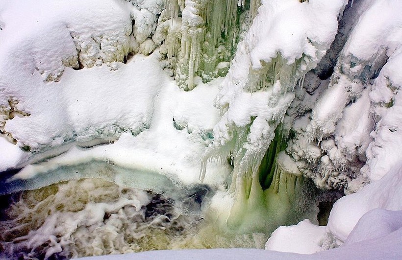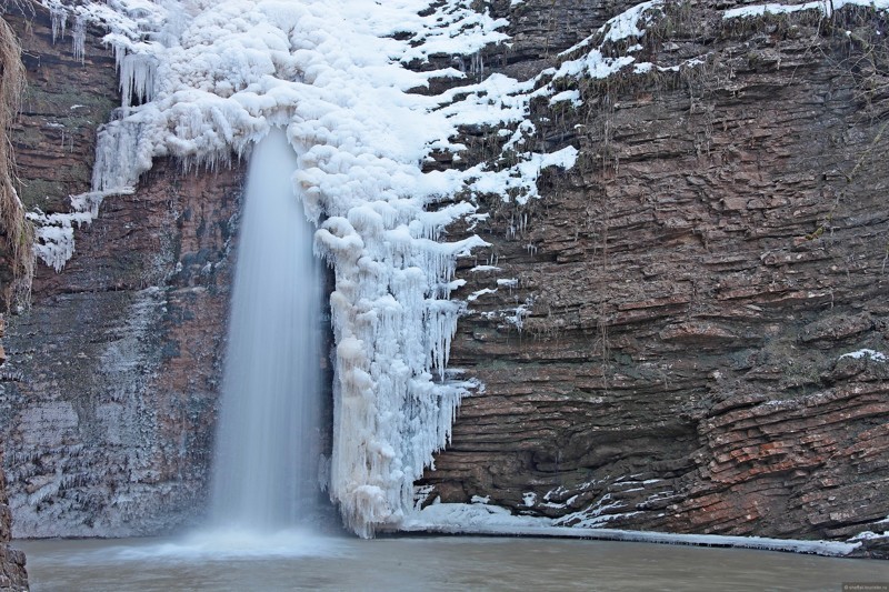 Водопады замерзают медленно, при этом вода в движении не замерзает при нуле. Сначала начинает замерзать река, ее течение замедляется, поэтому уменьшает и поток падающей воды. В водопаде появляются мелкие льдинки. Получается шуга — это вода, в которой множество крошечных ледяных кристаллов. Они постепенно прилипают к камням и скалам, а потом и друг к другу. При сильных морозах брызги замерзают прямо в полете, так образуется наледь, по которой все еще ниспадает вода. Затем замерзает и оставшееся течение, охватывая водопад целиком и превращая его в настоящую ледяную стену.