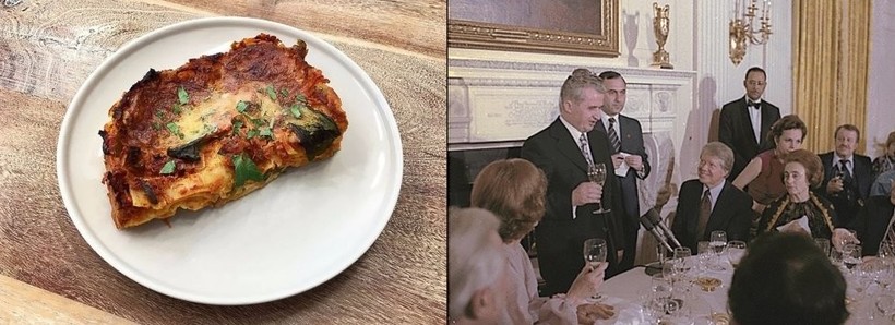 Любимыми блюдами президента Румынии Николае Чаушеску были вегетарианская лазанья с яйцом, стейки с салатом из помидоров и феты и заливной карп. Генсек Румынской коммунистической партии очень боялся отравления, поэтому не ел еду, если ее не проверили на яды. Также поговаривают, что Чаушеску мог запросто кинуть блюдо на пол.