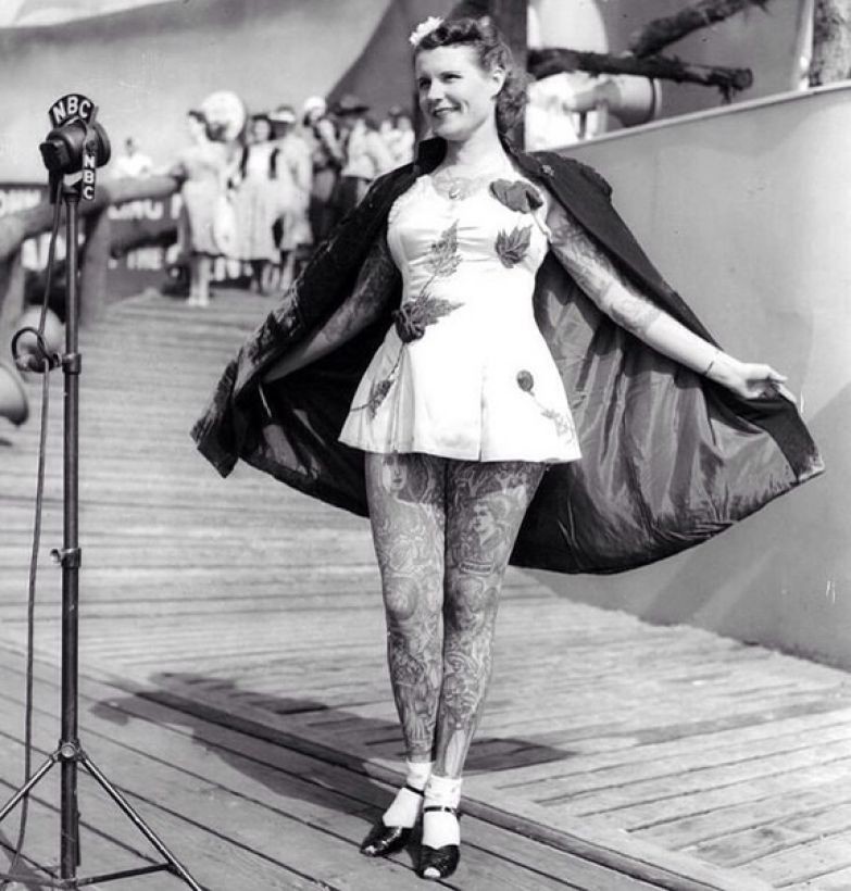 Леди с татуировками на Всемирной выставке в Нью-Йорке, 1939 г.