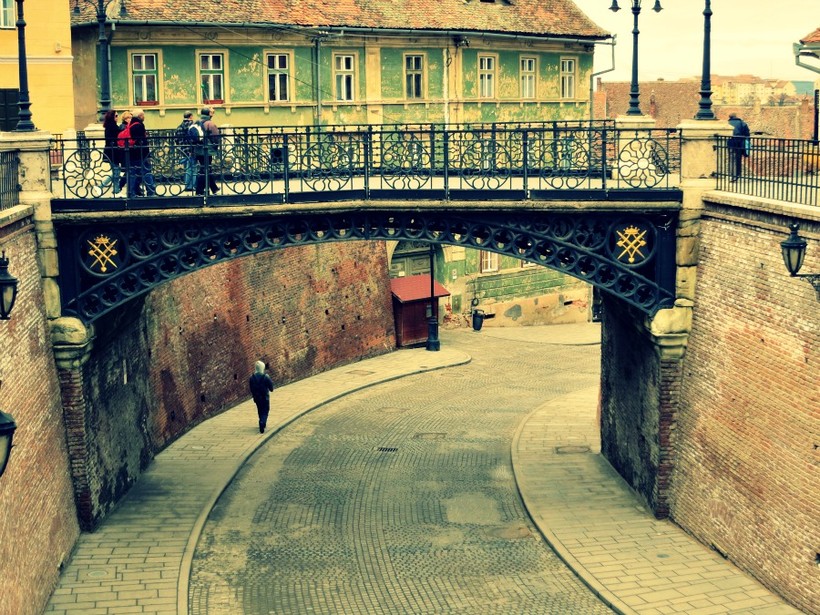 Мост лжецов — первый чугунный мост в Румынии, является еще одной гордостью достопримечательностью. Мост находится рядом с маленькой площадью (Piata Mica) на улицу ниже. Он соединяет Верхний город с Нижним.