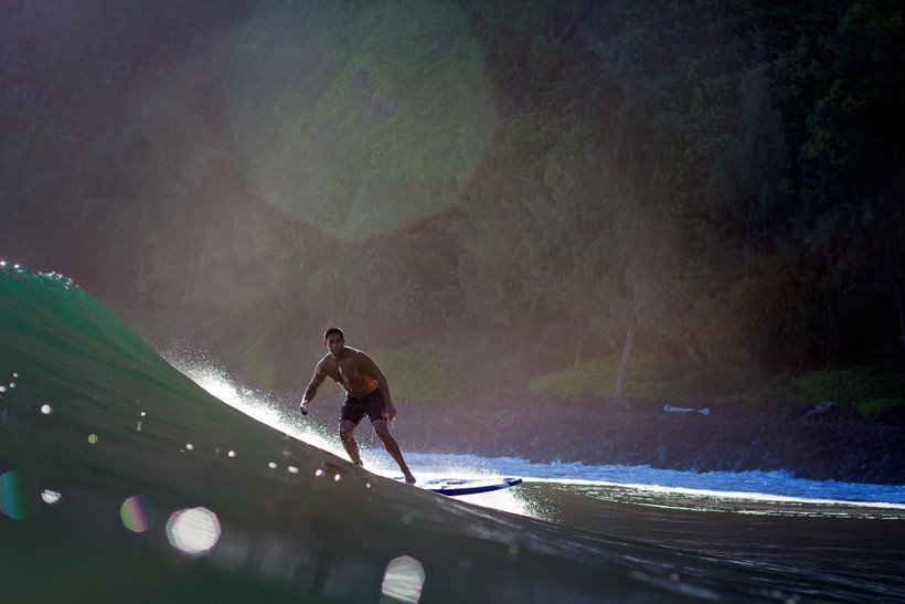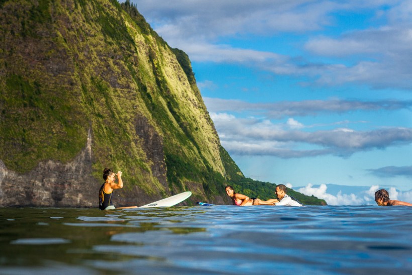 Это место, в котором мы, гавайцы, любим бывать. Тело в океане, на воде, теплое и невесомое, лицо к небу. Так можно ощущать оба мира одновременно. Качание волн, темно-зеленые холмы, отвесные и резкие перепады скал — это идеальное место. Чувствуешь себя, как дома.