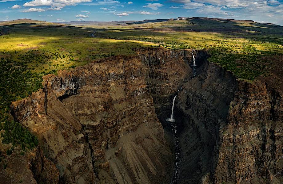 Иногда пейзажи плато Путорана сравнивают с Исландией. Они такие же дикие, холодные, но при этом бесконечно завораживающие и влюбляющие в себя. Плато Путорана занимает огромную площадь в 250 тысяч квадратных километров, что сравнимо с площадью Великобритании. Именно тут находится самое большое количество водопадов России: их тут тысячи, и до сих пор их никто не может подсчитать, а на карту занесена лишь малая часть. Да, водопады здесь не такие, как мировые рекордсмены, небольшие, приземистые, однако они повсюду.