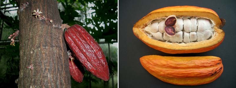 Какао-деревья предпочитают субэкваториальный климат и растут, как правило, на территории Южной Америки. Зерна из плодов дерева перемалывают до порошкообразного состояния и только тогда употребляют в пищу.