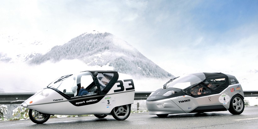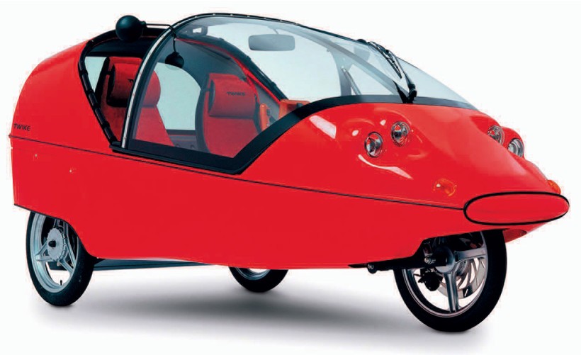 Twike — совместный проект Швейцарии и Германии, который выпускают и сегодня. Двигается он с помощью электрического двигателя, либо… с помощью педалей! Производитель даже гордится тем, что физические упражнения настолько согревают водителя, что в салоне не нужна печка.