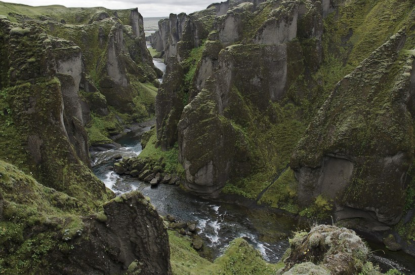 Река на фоне скал выглядит крохотной. На самом же деле вся проделанная работа по размыванию скальной породы принадлежит ей.